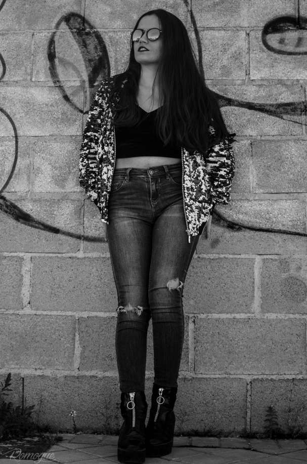 Tenía muchísimas ganas de enseñaros este look, me encantan las bomber y más aún si son de lentejuelas, por eso cuando la vi supe que llevaba mi nombre.